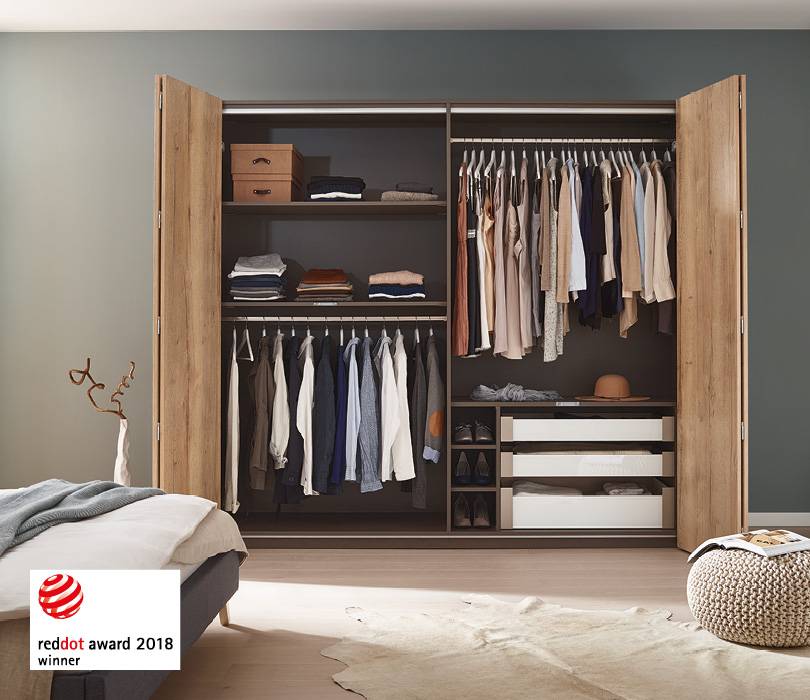 WingLine L lets you produce folding sliding doors in a completely new dimension of convenience. The revolutionary Push / Pull to move opening mechanism provides access to everything inside the cabinet with just one movement of the hand. An impressive panorama effect! Further highlights: optimised running performance, soft opening and closing, tool-less installation as well as minimal door protrusion for efficiently organising the space inside. WingLine L competently and securely moves door wings weighing up to 25 kg and measuring up to 2,400 mm in height: a talented all rounder for the bedroom, kitchen and office.