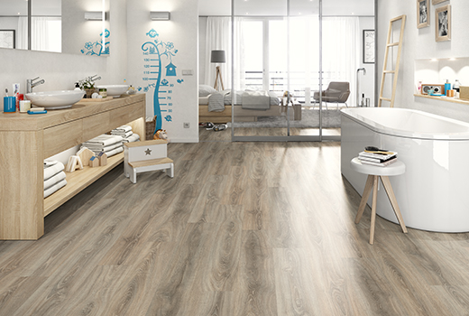 From a cosy living room to a purist loft, from a rustic dining area to an inviting hotel room: Laminate is one of the most popular types of flooring there is. And it is one of the most versatile. Due to the variety of authentic decors, from trendy solid wood optics to Scandinavian lightness and stylish elegance, the perfect design can be found for every room and interior design wish. In addition to the wide range of decors, our Laminate Flooring features high-quality workmanship and functional properties. It is robust and easy-care, flexible and quick to install. All of this at an excellent price-performance ratio.Feel the quality of our Laminate Flooring at every turn.