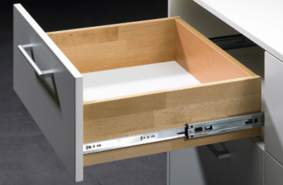 Using a release lever, the drawer can be detached from the runner and thus removed and re-fitted with ease