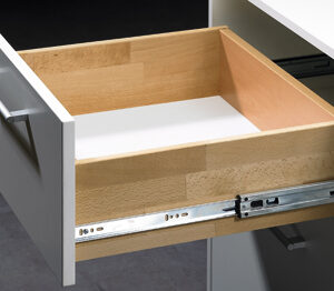 Using a release lever, the drawer can be detached from the runner and thus removed and re-fitted with ease
