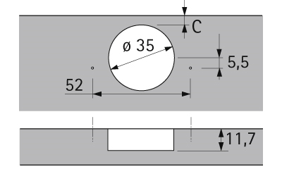 Intermat 110° – hinge without self closing feature, Inset, for screwing on (-)